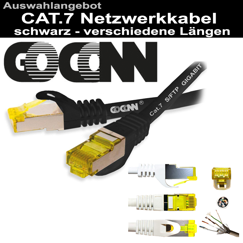 GoConn Patchkabel RJ45 mit CAT7 Rohkabel schwarz